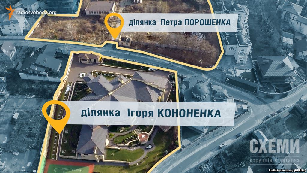 Президент Петр Порошенко и первый заместитель председателя его фракции в парламенте Игорь Кононенко купили элитную землю на Печерске в Киеве у компании, владелец которой говорит, что не получал за это средств и был «наемным директором». Об этом говорится в расследовании программы Радио Свобода «Схемы».