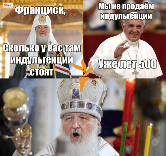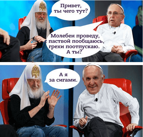 В сети появились фотожабы на будущую встречу Папы Римского Франциска с главой Русской православной церкви патриархом Кириллом.