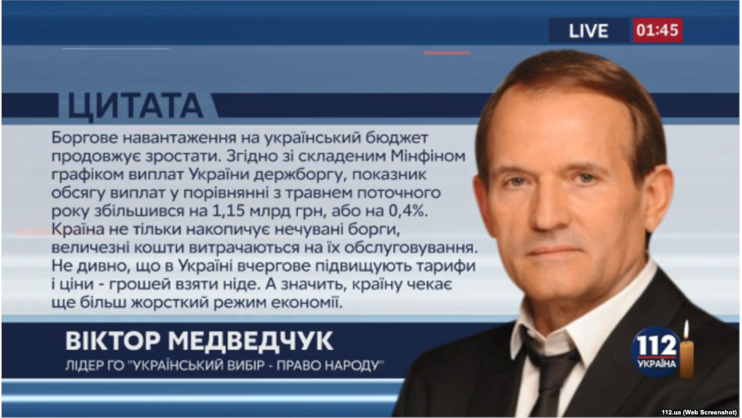 Летом 2018-го в эфире информационного телеканала «112 Украина» значительно участились упоминания о Викторе Медведчуке в положительном русле. На рынке заговорили о том, что лидер пророссийского движения «Украинский выбор» приобрел этот телеканал.