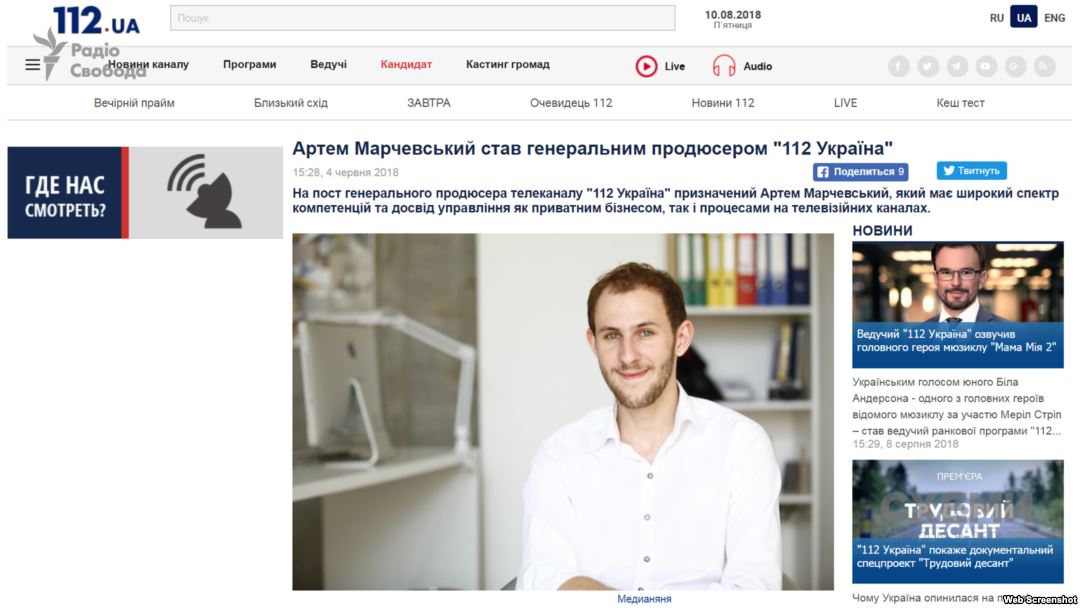 В начале июня на официальном сайте телеканала появилось сообщение, что у "112 Украина" теперь новый генеральный продюсер – 30-летний Артем Марчевский.