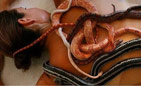 Один из самых необычных видов массажа освоили в Израиле. Здесь на спины клиентов сажают сразу по шесть змей, причём используются разные виды – от калифорнийской королевской змеи и пятнистого лазающего полоза до поперечно полосатой королевской змеи.
