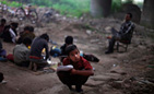 Малообеспеченные индийские дети обучаются в бесплатной школе под мостом метро в Нью-Дели, Индия. По меньшей мере, 30 детей, проживающих в близлежащих трущобах, получали бесплатное образование в этой школе за последние три года.