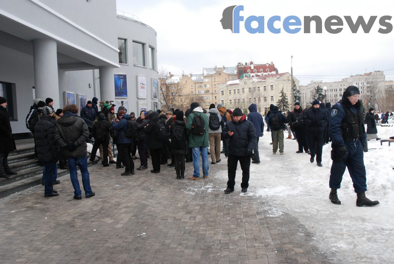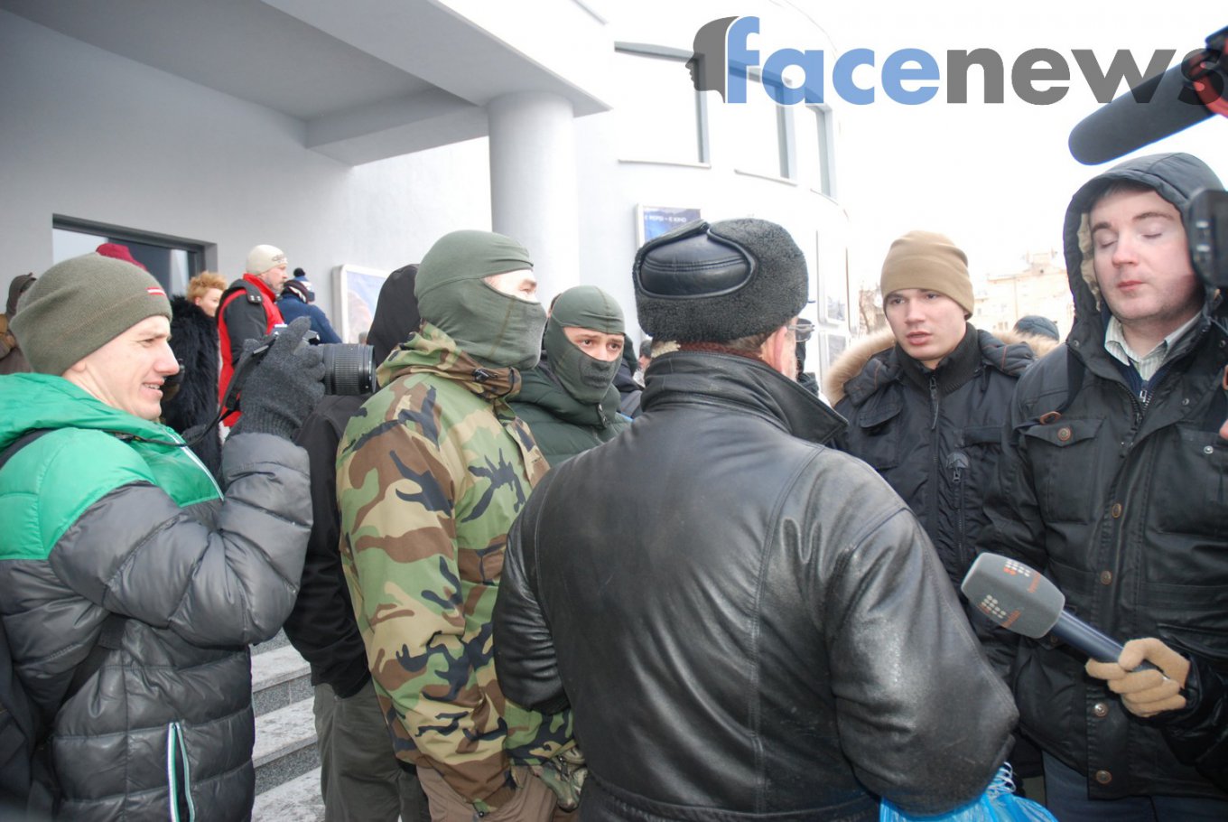 Проведению мероприятия помешали где-то 50-60 человек из Гражданского корпуса Киева, многие из которых были в балаклавах и камуфляже.