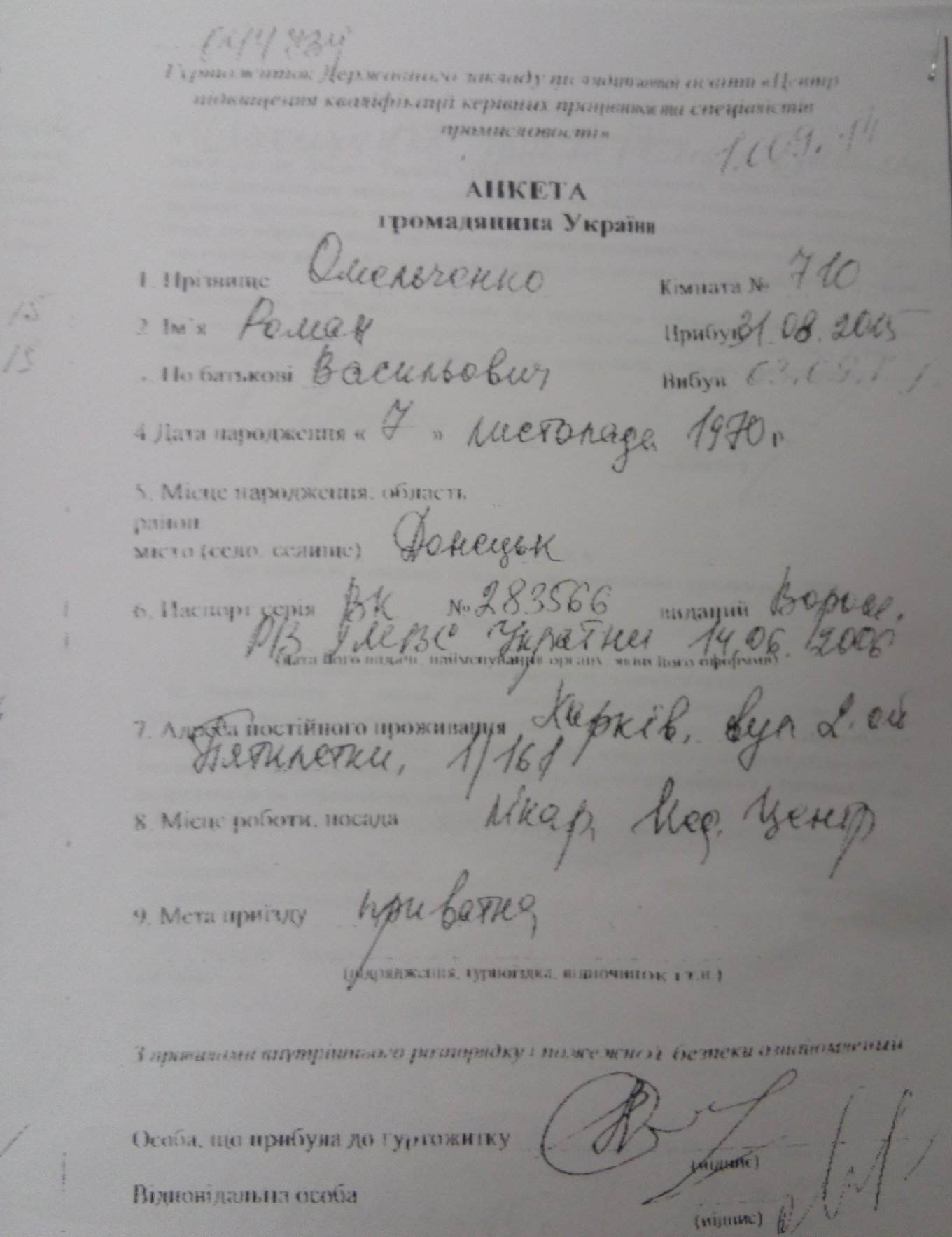Что касается Омельченко, там другая ситуация. Эти люди заехали как туристы. Видно, когда они заехали 31 августа, должны были выехать 3 сентября. То есть они заехали как туристы. Цель приезда – частная. То есть у них даже адрес постоянного места жительства указан в Харькове.