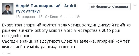 Более того, за 2015 год профильный комитет Верховной Рады признал работу Алексей Павленко неудовлетворительной. Вердикт комитет вынес при отсутствии на заседании самого министра.