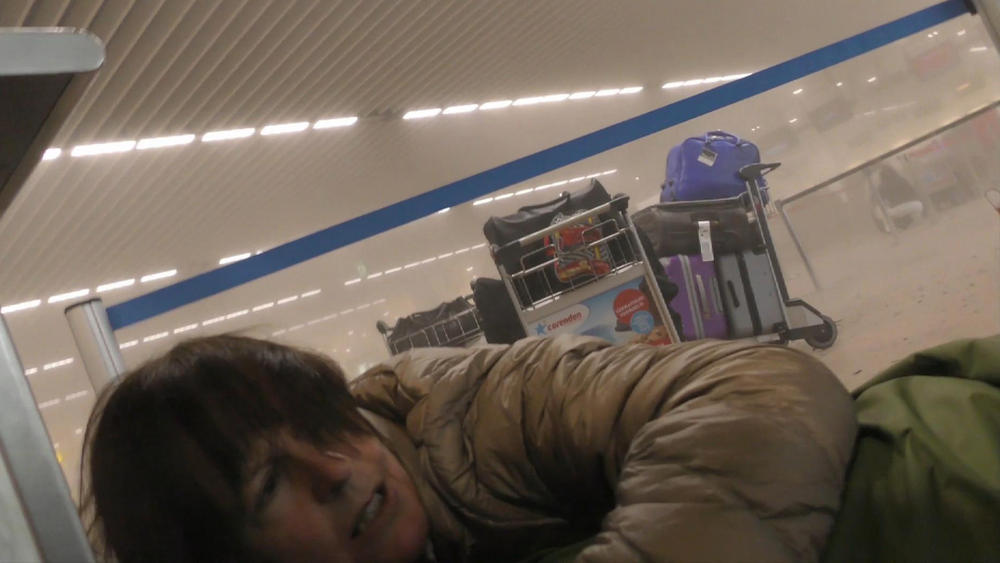 Один из пассажиров, Елена Чад, только зарегистрировалась для полета в Филадельфию и находилась в Starbucks возле выходов на посадку, когда люди начали бегать и паниковать вокруг нее. Пассажиры бросились к воротам, где их, как правило, должны были регистрировать для посадки на самолет. Оттуда они были доставлены в грузовой терминал DHL. Люди со всего мира - Дубай, Индия, Африка - все собрались вместе, многие были одеты в совсем тонкую одежде и потому дрожали от холода.