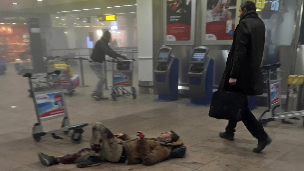 Разделы потолочной плитки разрушилась, и снятое дрожащими руками на мобильный телефон видео показало окровавленных путешественников, бредущих в оцепенении или лежащих ранеными на полу. Кадры из RTL Belgium продемонстрировали разбросанный вокруг терминала багаж, покрытый копотью и толстым слоем пыли. На заднем плане был слышен женский крик.