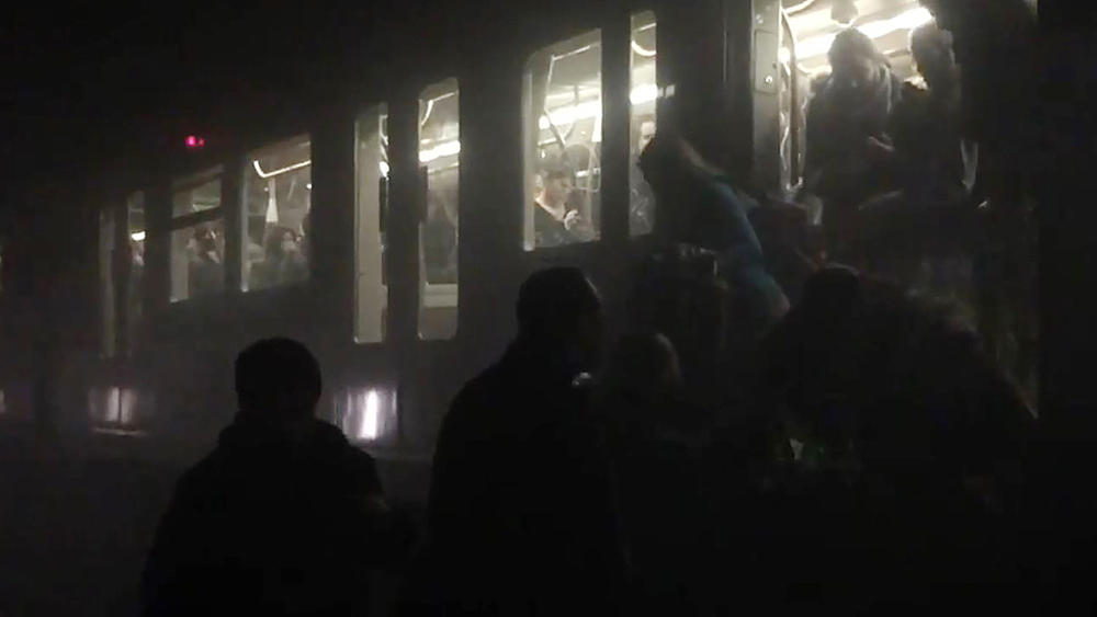 Сотрудник метро поставил лестницу к каретке и помог людям сойти с поезда, направляя их, чтобы они шли вниз по туннелю в другую сторону от взрыва.