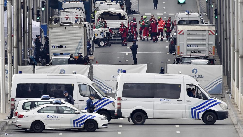 Людей в Брюсселе попросили оставаться взаперти, пока вооруженная полиция и аварийно-спасательные службы переместились на улицы. Чиновники объявили о наивысшем уровне террористической угрозы.