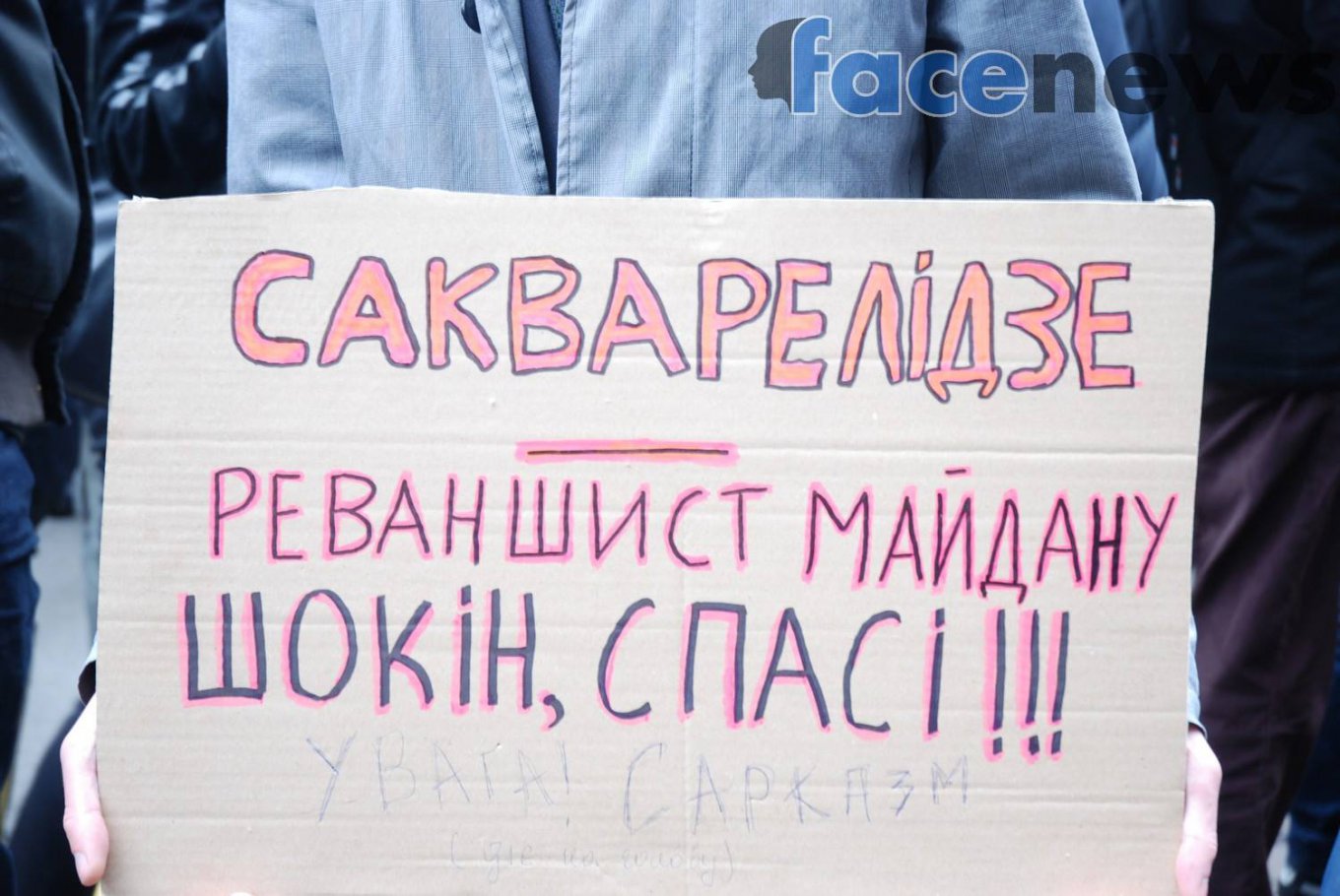 Во время разговора FaceNews с Ириной Бекешкиной рядом с нами начала развиваться интересная ситуация. Молодого человека, стоявшего с плакатом «Сакварелидзе – реваншист. Шокін, спасі!!!» попросил отойти в сторонку какой-то мужчина, тоже участвовавший в акции под ГПУ. Нам удалось услышать их диалог.