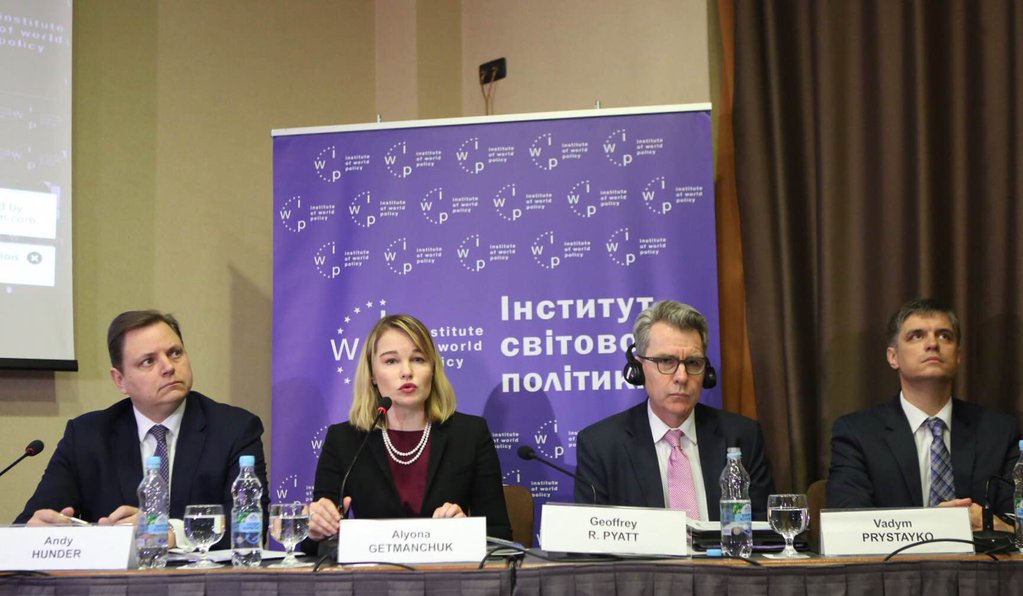 Чтобы в какой-то мере расставить точки над «і», в конференц-зале Radisson Blu Hotel во вторник, 29 марта, прошла пресс-конференция «США для Украины: партнер, патрон или союзник?». Основой мероприятия была презентация исследования Института мировой политики «Аудит внешней политики: Украина-США», которую проводила Алёна Гетьманчук, директор ИМП. Далее последовала дискуссия, в которой приняли участие заместитель министра иностранных дел Украины Вадим Пристайко, посол США в Украине Джеффри Пайетт и президент Американской торговой палаты Энди Гундер.