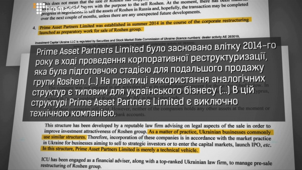 «Prime Asset Partners Limited було засновано влітку 2014-го року в ході проведення корпоративної реструктуризації, яка була підготовчою стадією для подальшого продажу групи Roshen. (…) На практиці використання аналогічних структур є типовим для українського бізнесу (…) В цій структурі Prime Asset Partners Limited є виключно технічною компанією».