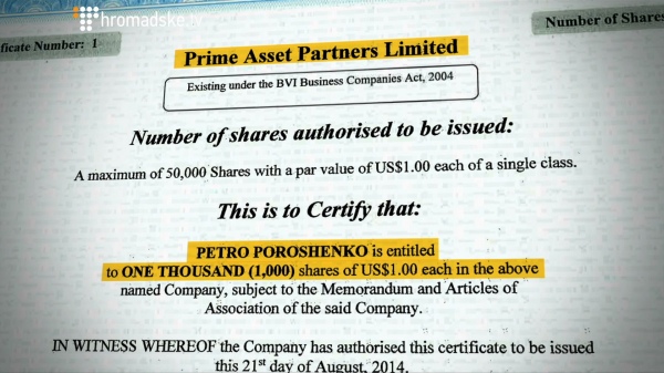 «Акції Prime Asset Partners Limited не мають номінальної вартості. Відповідно до вимог щодо декларування майна у 2014 році, включенню до декларації підлягала інформація про акції, які мають номінальну вартість».