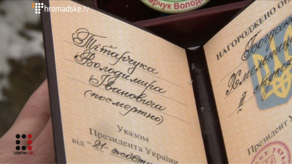 За кілька днів після загибелі Володимира Тітарчука Президент Порошенко посмертно нагородив мертвого «кіборга» орденом.