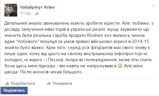 Владимир Арьев: Подробный анализ обвинений должны сделать юристы