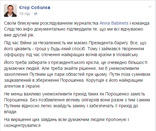 Егор Соболев: Во время войны за независимость у нас Президент-барыга