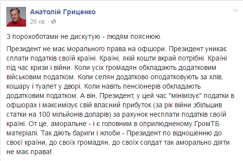 Анатолий Гриценко: Так действуют барыги и жлобы