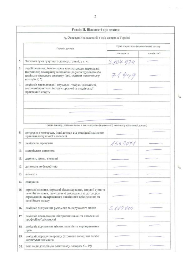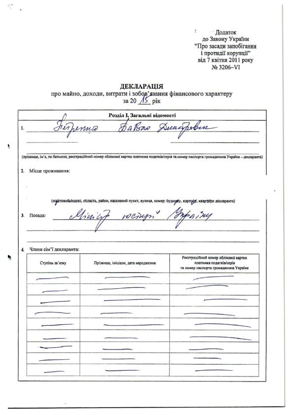 Министр задекларировал в 2015 году 3 миллиона 807 тысяч 974 грн совокупного дохода, получив менее 72 тысяч гривень зарплаты. Большую часть дохода – 2,1 миллиона гривень – Петренко получил от отчуждения имущества.