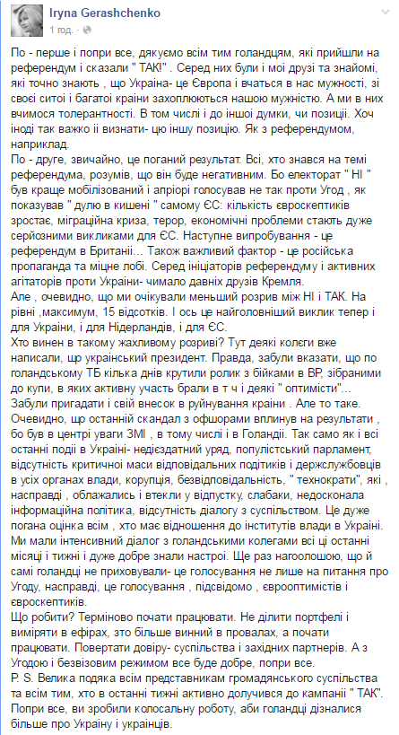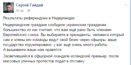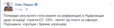 О том, как на результаты голландского референдума отреагировали в Украине, читайте на FaceNews.
