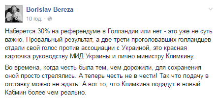 Борислав Береза: Это красная карточка руководству МИД и лично Климкину