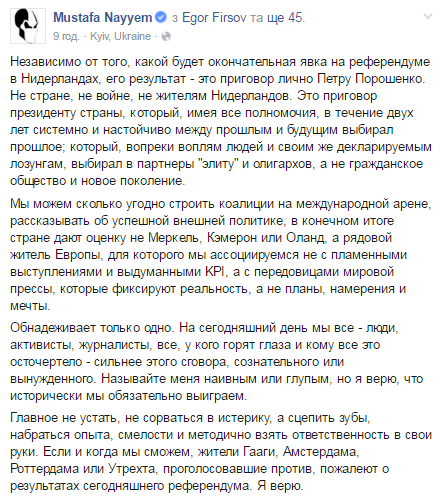 Мустафа Найем: Результат референдума – это приговор лично Порошенко