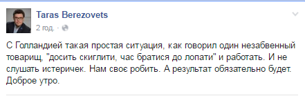 Тарас Березовец: «Досить скиглити, час братися до лопати»