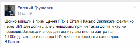 При этом, в ГПУ заявляют, что Касько сам не явился в назначенное время на допрос, а вместо этого предпочел провести брифинг.