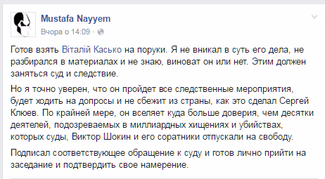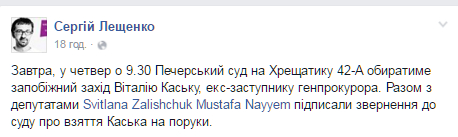 Раннее о своей готовности взять Касько на поруки заявляли народные депутаты от БПП Мустафа Найем, Сергей Лещенко, Светлана Залищук, нардеп от Радикальной партии Игорь Мосийчук и внефракционный депутат Виктор Чумак.