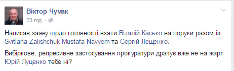 «С одной стороны мотивация преследования Касько действительно политическая. Что касается его вины во всех этих квартирных вопросах, считаю, что он действительно виноват. Я не говорю, что это должно быть уголовное преследование. Но три служебные квартиры приватизировать – это слишком. Я бы призвал его показать ту квартиру, которую он последнюю приватизировал на четвертый день после смертей на Майдане. Это несколько перебор, на мой взгляд. Поэтому считать Касько моральным авторитетом не готов», – заявил Луценко в кулуарах Верховной Рады.
