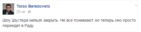 Тарас Березовец: Шоу теперь просто переедет в Раду