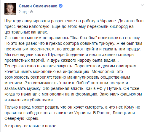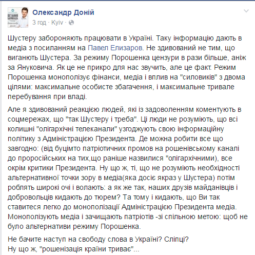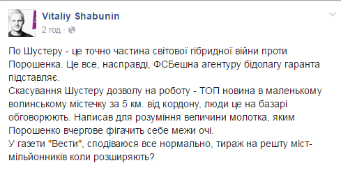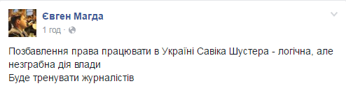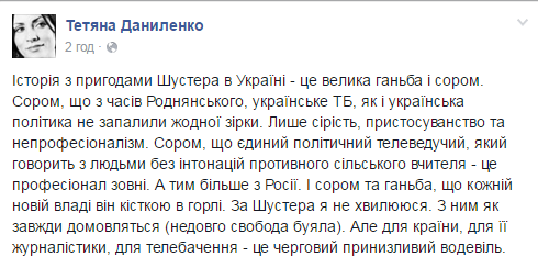 Сам Шустер, комментируя такое решение, подчеркивает, что эта власть абсолютно не терпит никакой критики и заявляет, что угроза нависла над всеми.
