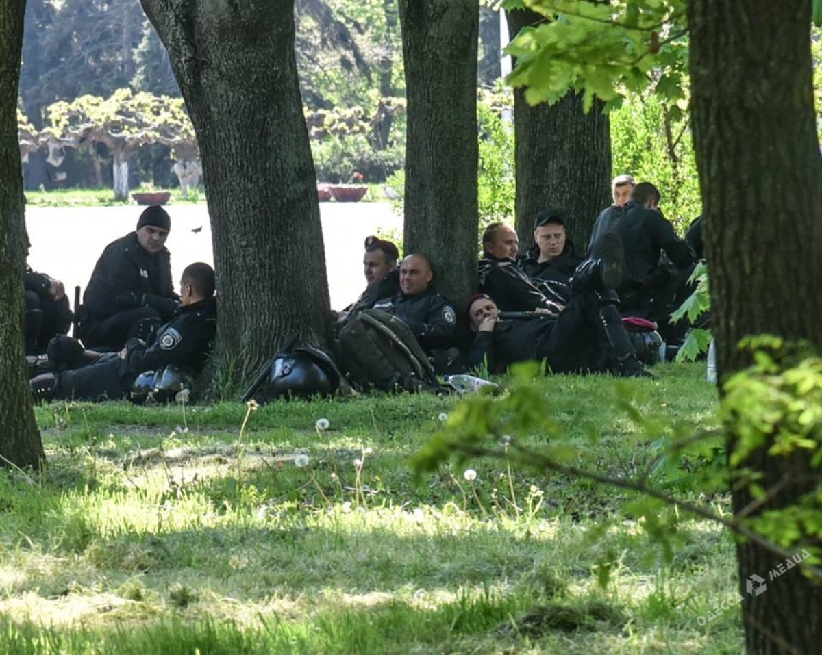 К 18 часам число задержанных по всему городу достигло 40 человек. По информации правоохранительных органов, в частности, составлен административный протокол по ст. 178 КУоАП в отношении мужчины, который приколол к одежде георгиевскую ленту. Кроме того, два админпротокола составлены по ст. 195 КУоАП и открыто уголовное производство в отношении мужчины по ст. 263 УК Украины (незаконное обращение с оружием, боевыми припасами и взрывчатыми веществами). У правонарушителя изъят кастет. Также на улице Канатной (недалеко от Куликова поля), где собралось много людей по случаю 2-летнего юбилея трагедии 2 мая 2014 года, задержали 40-летнего жителя Одесской области. В его сумке были найдены нунчаки.