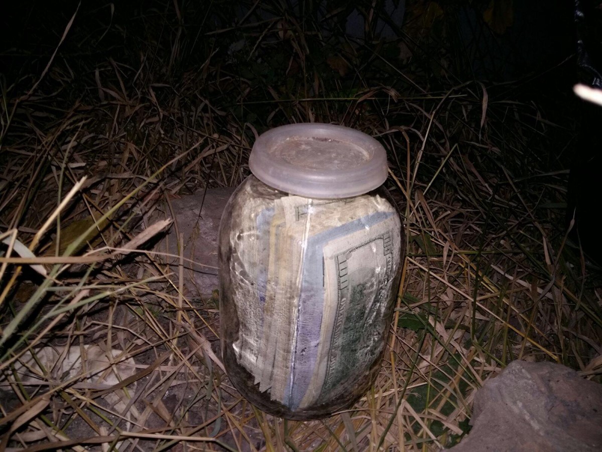 Как сообщил руководитель ведомства Назар Холодницкий, на месте изъяли стеклянную банку с деньгами.