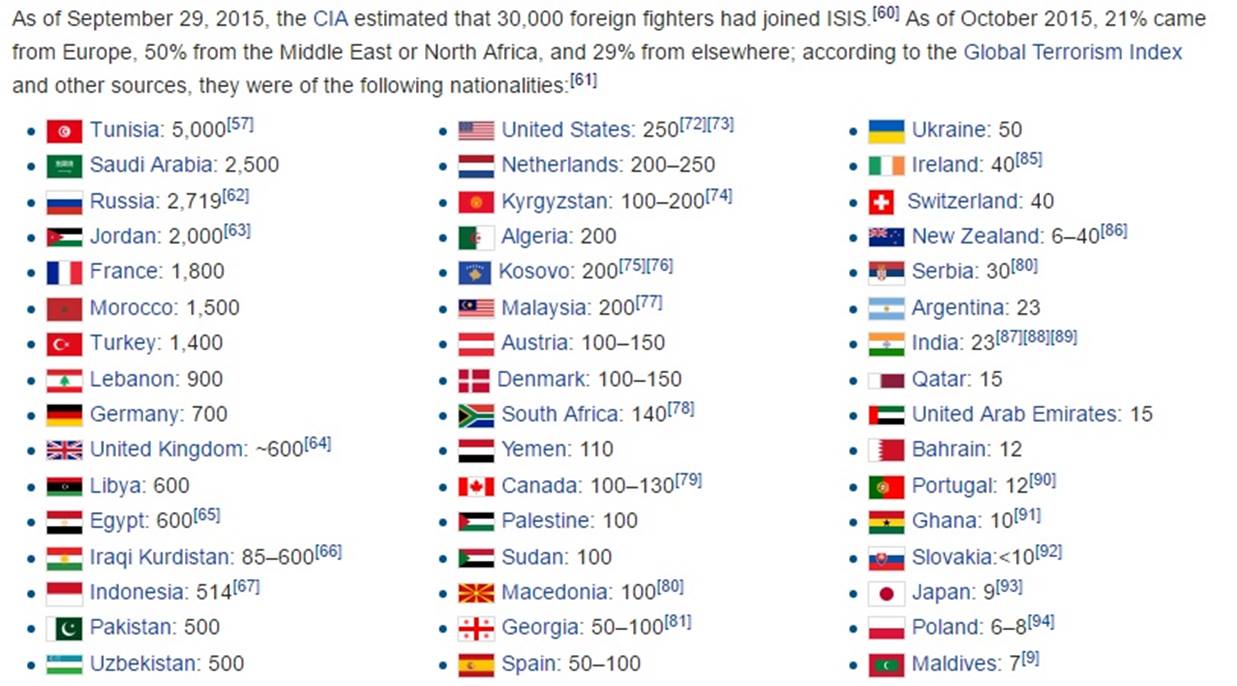 Точно знаю, что в рядах ИГИЛ воюют много россиян — до 2500 человек. Россия входит в тройку стран, из которых приезжает больше всего добровольцев. А вообще, в ИГИЛ порядка 27 тысяч иностранных добровольцев, это почти половина всей их армии. Бойцы приезжают из Норвегии, Дании, Швейцарии, даже из Мальдив, где с 2014 года появилась их ячейка.