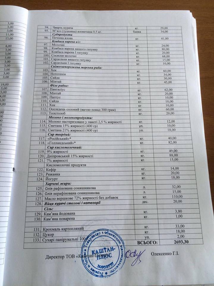 В «каштановом» прайсе нашлись такие бриллианты как картофель по 7 грн./кг, морковь по 9 грн./кг, лук по 8 грн./кг. Это по меньшей мере вдвое дороже рынка и оптовых закупок. Именно это сравнение и заставляет нас сделать первое предположение о хищении бюджетных средств.