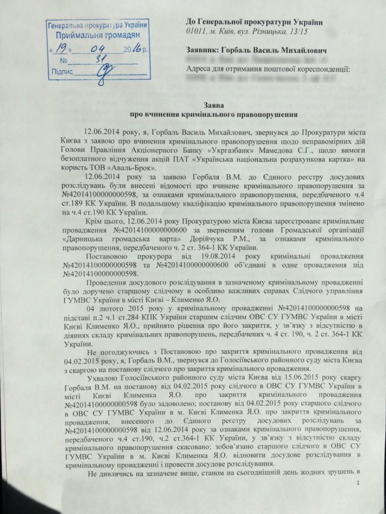 Отметим, что первым на эту тему поднял шум уцелевший Василий Горбаль, который кинулся спасать что возможно из собственности и обратившийся в МВД с заявлением о вымогательстве. И вот уже в августе 2014-го из респектабельных бизнесменов Сергей Мамедов и Дмитрий Полковский тут же превратились в фигурантов уголовного дела (интернет-издание «Національне бюро розслідувань України» 9.03.2016). Насколько можно судить от интереса прокуратуры города Киева им временно удалось «уклониться», но такое спокойствие обычно весьма зыбкое.