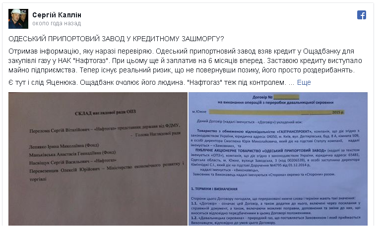 Также этот банк обслуживал компанию «Газтранспроект». В июле 2015 года нардеп Сергей Каплин опубликовал фотокопию контракта, согласно которому это предприятие до конца года должно было поставить на Одесский припортовый завод 550 млн кубометров газа для дальнейшей переработки в аммиак и карбамид.