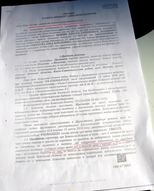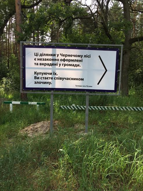 Судя по «смешной» для этого надела цене (320 тысяч гривен за 50 соток), прежнему владельцу надоели судебные баталии с местными активистами. «Эти участки незаконно оформлены и украдены. Покупая их, вы становитесь соучастником преступления», — такие щиты с призывами к совести потенциальных покупателей размещают «назойливые» защитники Чернечьего леса возле спорных участков, донимая «уважаемых людей».
