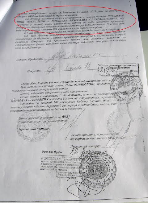По документам видно, что кусочек леса Соболев записал на имя молодой жены, с которой оформил отношения в июле 2015 г. Инна Алексеевна Вильчинская (Соболева) прикупила участок в 0,5 га у некоего Эдуарда Осипяна.