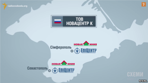 В апреле в реестре юридических лиц Федеральной налоговой службы России появилось ООО «Новацентр К». Юридический адрес - Симферополь, проспект Победы, 245. Это адрес одного из гипермаркетов «Эпицентр» в Крыму. Российская фирма «Новацентр К» занимается торговлей строительными материалами в гипермаркетах «Эпицентр» в Симферополе, Севастополе и в крымских гипермаркетах «Новая линия».