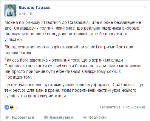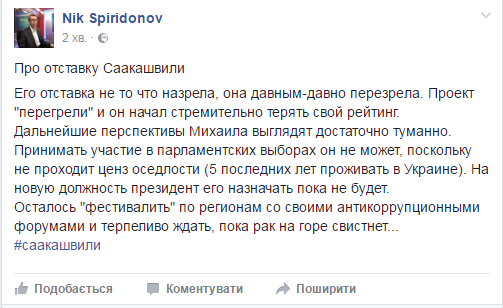 О том, что об отставке Михеила Саакашвили думают украинские политики и аналитики, читайте на FaceNews.