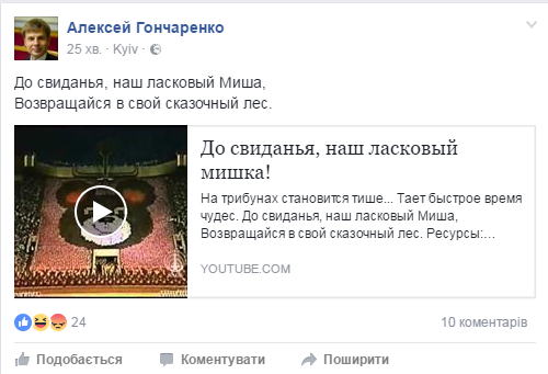 Нардеп Алексей Гончаренко: До свиданья, наш ласковый Миша