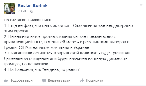 Политический аналитик Руслан Бортник: Саакашвили останется в украинской политике