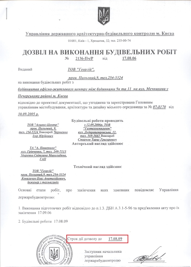 Но самое главное в разрешении даже не то, что оно выдано другой компании, а то, что срок его действия давно истек — еще 17 августа 2009 года. По нашей информации, новое разрешение на строительство не выдавалось.