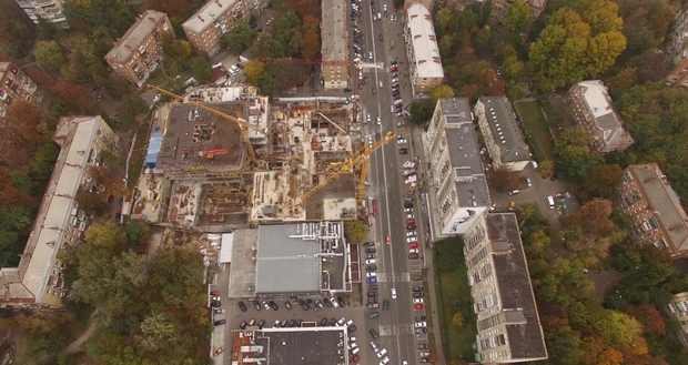 Как показали визиты на место строительства, работы ведутся ежедневно. Во время одного из таких посещений к нам вышел директор "Винг Девелопмент" Дмитрий Вельгус. Он сообщил, что это не строительные работы, а рабочие разбирают технику. Несмотря на это заверение, в последующие дни работали краны и монтировалась опалубка.