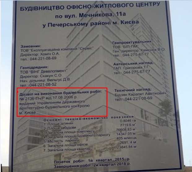 На своем информационном щите застройщик ссылается именно на это разрешение №2136 – Пч/Р от 17.08. 2006 года.
