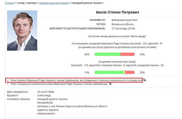О том, что Ивахив имеет интересы в строительной отрасли, косвенно свидетельствует и его членство в Комитете ВРУ по вопросам строительства, градостроительства и ЖКХ.