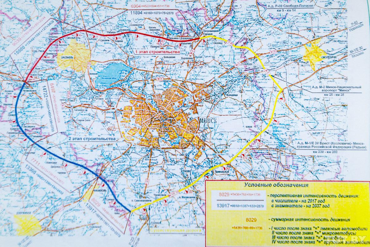 Вновь зазвучала критика «зачем?» – ведь на таком удалении от Минска находились в основном дачи. А города-спутники пока не стали причиной транспортного коллапса. Ответ на этот вопрос кроется в простом подходе к планированию — внимательно посмотрите на фото с презентации. Там, в легенде, расчёт потока автомобилей дан на 2017 и 2037 годы (по негативному сценарию). Суть не в количестве — в сроках. Начиная возводить дорогу в 2014 оценивали её функционал в 2037-м.