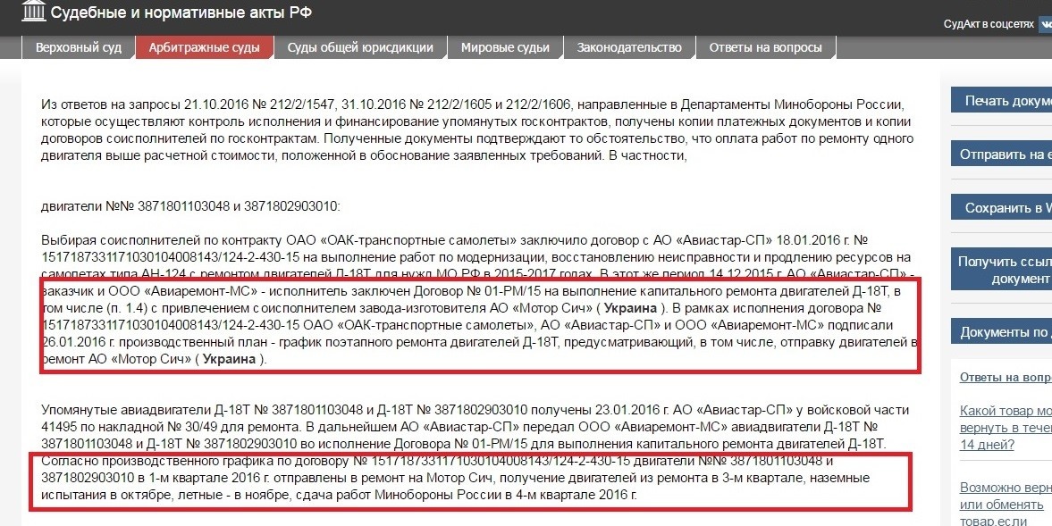 У будь-якому разі Москва має низку способів отримати потрібні послуги чи товари для своєї армії з України. Приклади містять інші документи російського судового реєстру, відповідно до якого РФ може отримувати авіакомплектуючі з України просто «помилково».