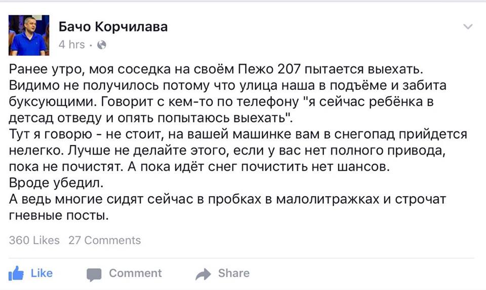 Экс-пресс-атташе посольства Грузии в Украине Бачо Корчилава: Многие сидят в пробках в малолитражках и строчат гневные посты